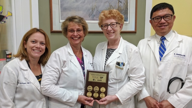 AHA GOLD AWARD WINNER – Kristi Springall, NP, Sandy Pike, NP, Linda Mandanas, MD and Renato Mandanas MD with the Target:BP Gold Award from the American Heart Association for Excellence in Blood Pressure Control.